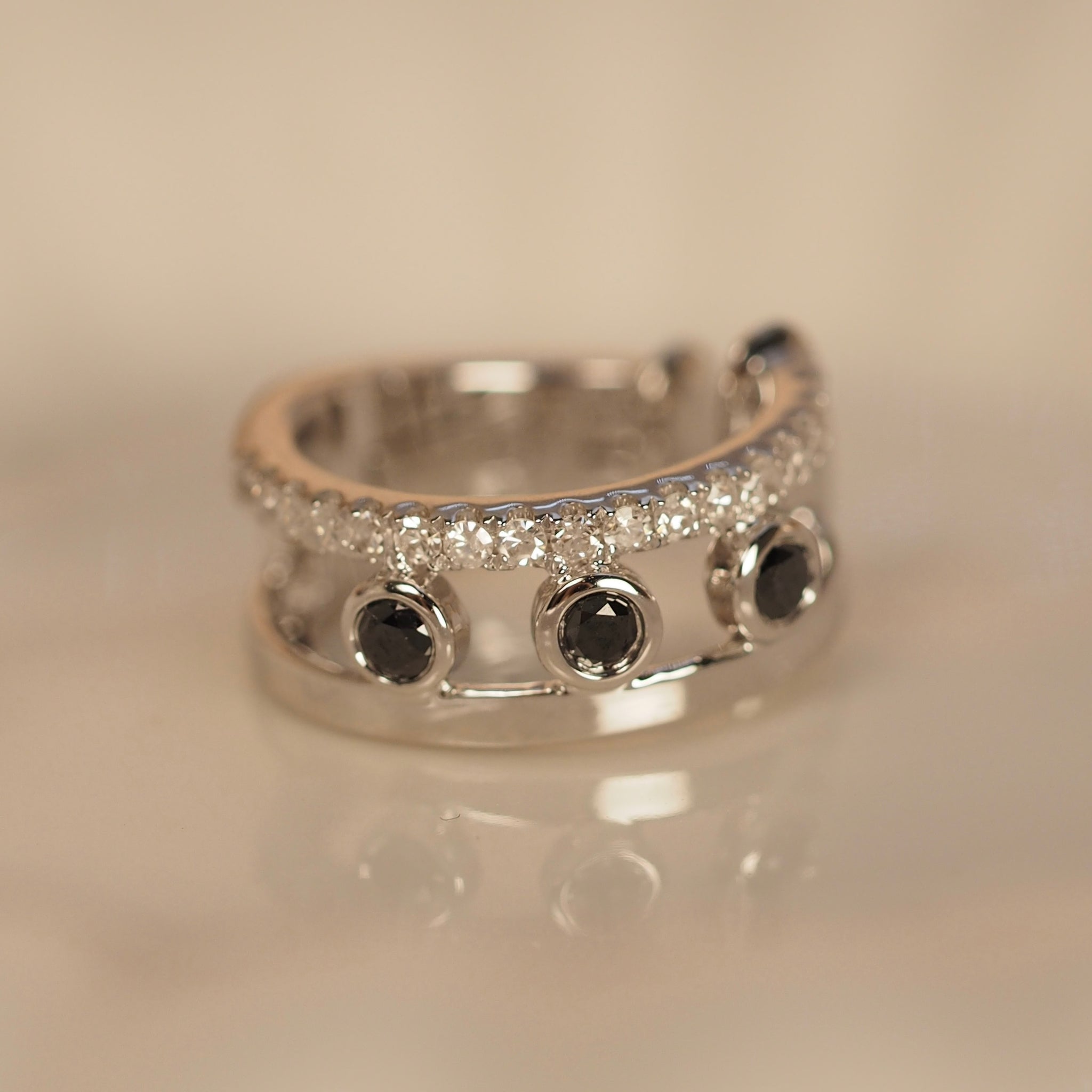 - 3 black diamonds, approx. 0.12 total carat weight